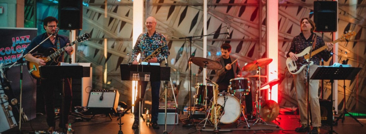 Die Live Band Jazz Colors Bamberg präsentiert jazzige Musik in bunter Vielfalt von Swing über Latin bis Fusion. Die Darbietung kann je nach Veranstaltung und Wünschen von dezenter Dinnermusik bis hin zum verstärkten Open-Air-Konzert angepasst werden. Jazz Colors Bamberg ist buchbar für Hochzeiten, Geburtstage, Firmenfeiern, Stadtfeste, Gesellschaftsabende bei Kongressen etc. im Raum Bamberg, Erlangen, Nürnberg, Schweinfurt, Würzburg, Coburg.